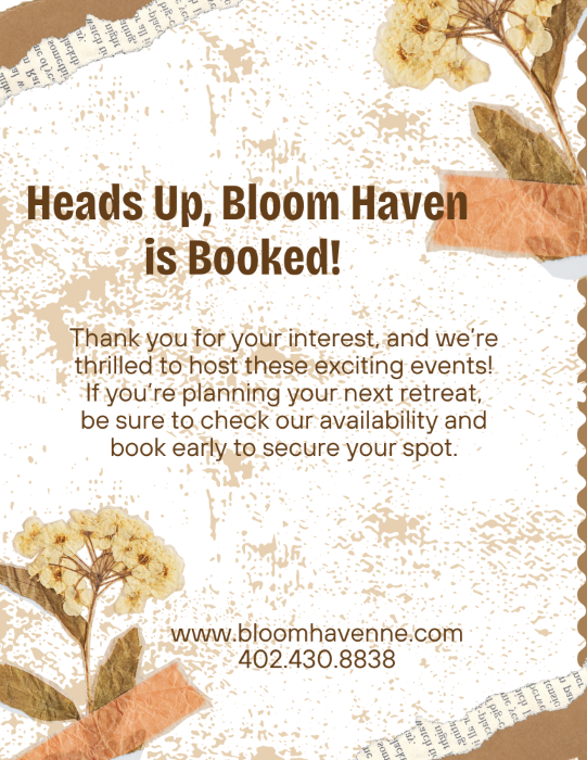 Contact: Tammytammy@bloomhavenne.com402.430.8838