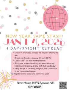 ✨ New Year, Same Stash ✨ Bloom Haven New Year’s Retreat📅 Thursday, January 1 – Sunday, January 4, 2026 Come early and spend NYE at Bloom Haven. Arrive anytime after 12:00 on Wednesday and stay overnight. Get a jump start on the NY retreat!($40 extra) Retreat Details: Check-in: Thursday, January 1st, anytime after 10:00 AM […]