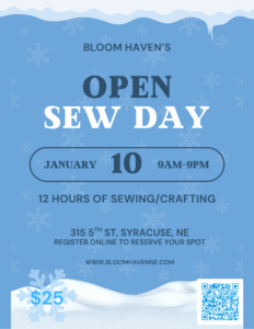 Join us for a 12-hour Open Sew on Saturday, January 10, 2026 From 9AM – 9PM – Sew the day away and spend time catching up on one of the many projects you’ve been collecting… or get a jump-start on the new one you’ve been meaning to get to! We will provide you with your own […]
