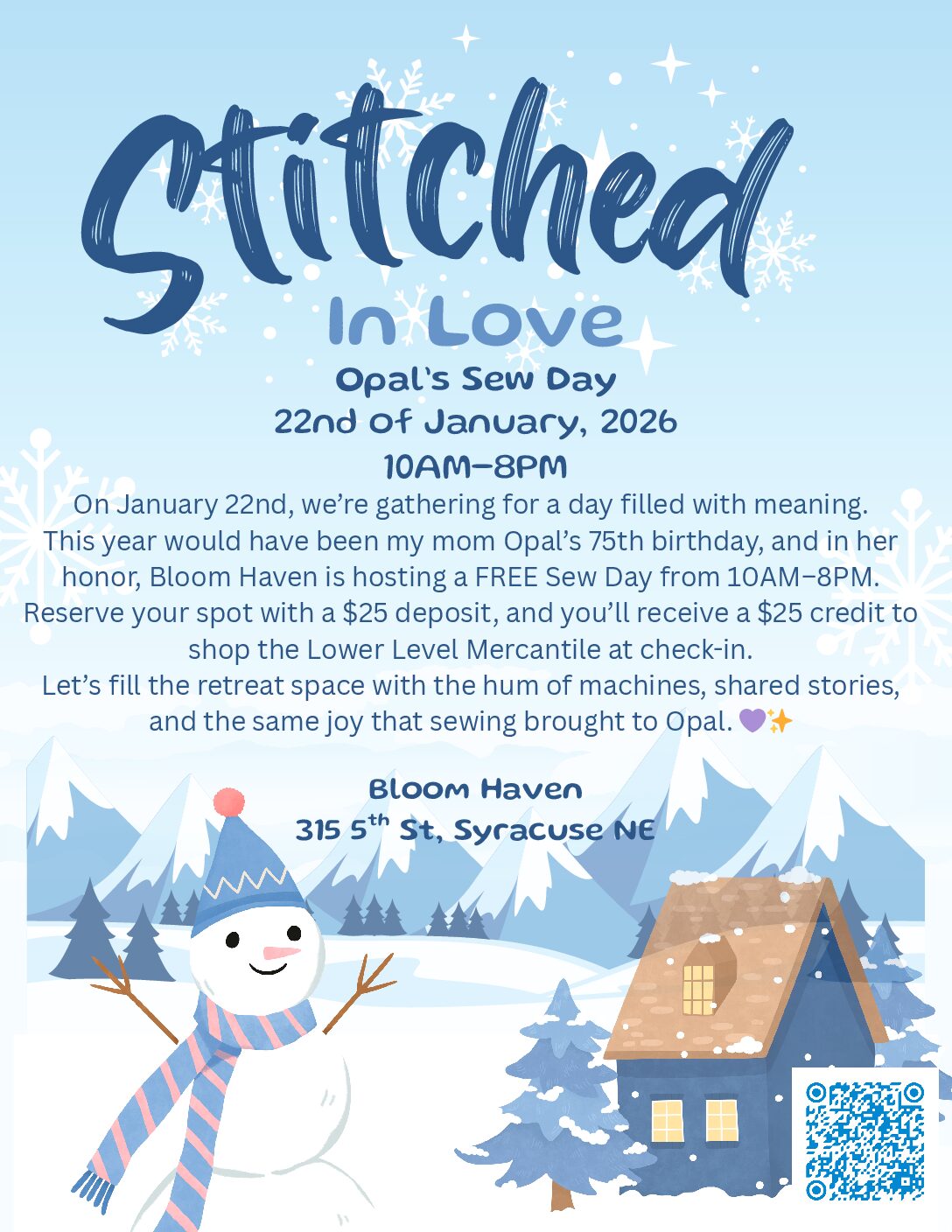 On January 22nd, we’re gathering for a day filled with meaning.This year would have been my mom Opal’s 75th birthday, and in her honor, Bloom Haven is hosting a FREE Sew Day from 10AM–8PM. Reserve your spot with a $25 deposit, and you’ll receive a $25 credit to shop the Lower Level Mercantile at check-in. […]